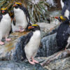 Doch wir müssen das sich ständig veränderte Wetter im Auge behalten, und so können wir in der „Royal Bay“ nur für wenige Minuten anlanden. Schneefall begleitet uns, und die Küstenlinie ist so mit Robben und Pinguinen belagert, das nur ein kleiner Strandabschnitt verbleibt, um mit einer kleinen Gruppe Besucher überhaupt anzulanden. Offiziell dürfen max. 100 Besucher an den Strand, doch hier passen gerade mal 20 Menschen an den schmalen Küstenstreifen, um die an einem kleinen Flusslauf hüpfenden Goldschopfpinguine (Makkaronipinguine) zu beobachten. Besonders herzig war ein Pinguinmännchen, das verzweifelt versucht einer angebeteten Dame einen Stein vor das Nest zu legen – und kläglich immer wieder damit scheitert.